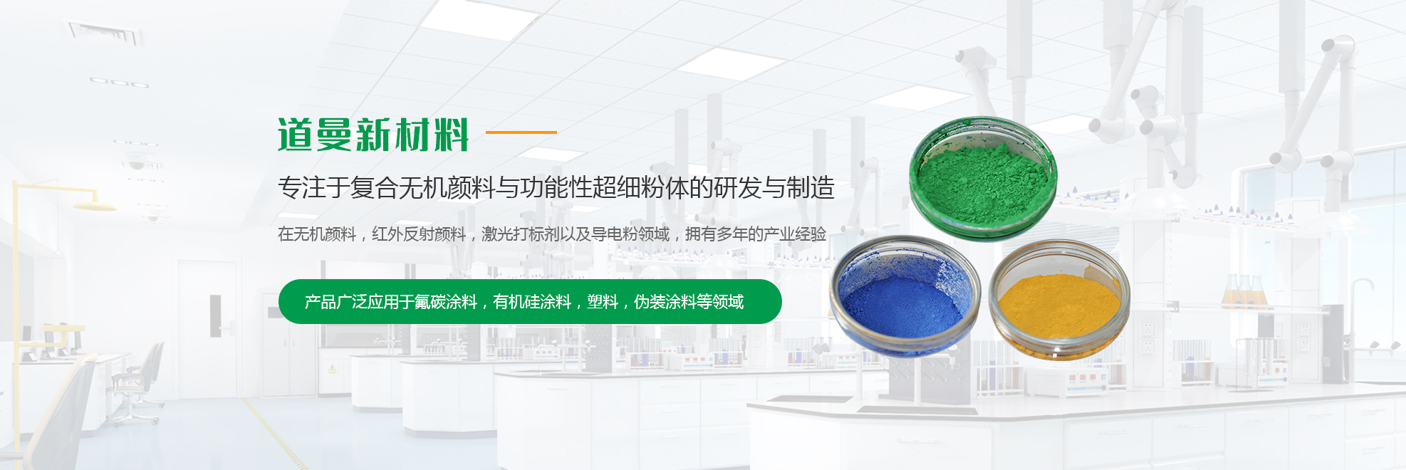 常州市道曼新型建筑材料科技有限公司,专注于复合无机颜料与功能性超细粉体的研发与制造。在无机颜料,红外反射颜料,激光打标剂以及导电粉领域,拥有多年的产业经验。公司产品广泛应用于氟碳涂料,有机硅涂料,塑料,伪装涂料等领域,年产值上亿元。